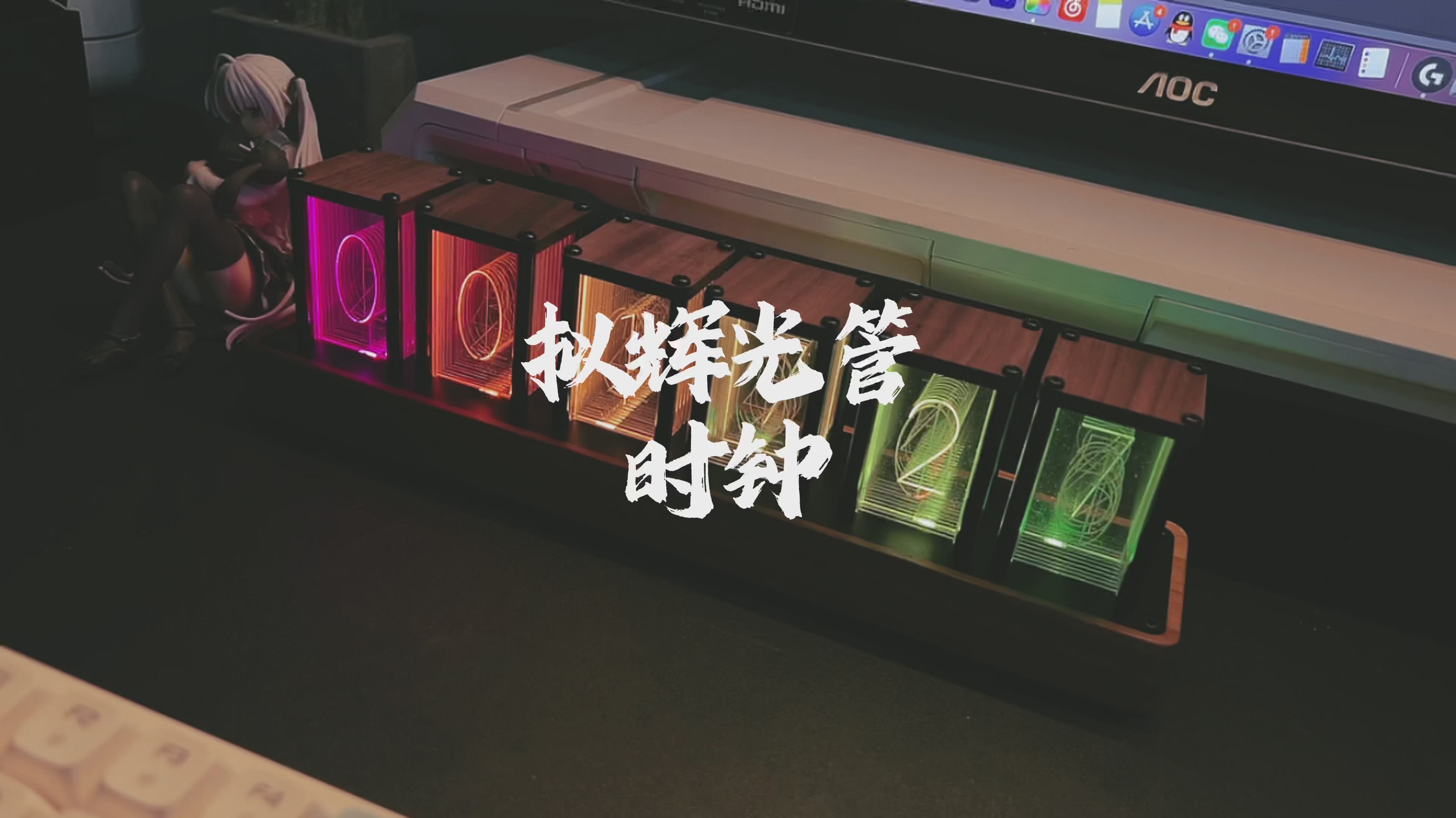 [Nixie Tube Clock Simulation] RGB glow digital clock simulation of glow tube electronic clock, installs 6pcs RGB glow PCB on the bottom and 10pcs number shape engraved display panes on the RGB to light up the corresponding display pane to show the number which makes it looks like the nixe tube clock.
